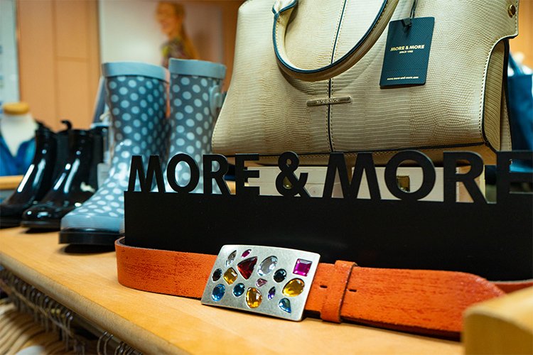 Bei meiner Auswahl lege ich großen Wert auf eine gute, aufeinander abgestimmte Kollektion mit vielen Kombinationsmöglichkeiten. Vom Loop über das Shirt/die Bluse und dem Rock oder der Hose bis hin zum Kleid mit Blazer ist farblich alles in sich stimmig und passend. More & More gibt es in den Größen 34-46, sowie comma, von 34-44.